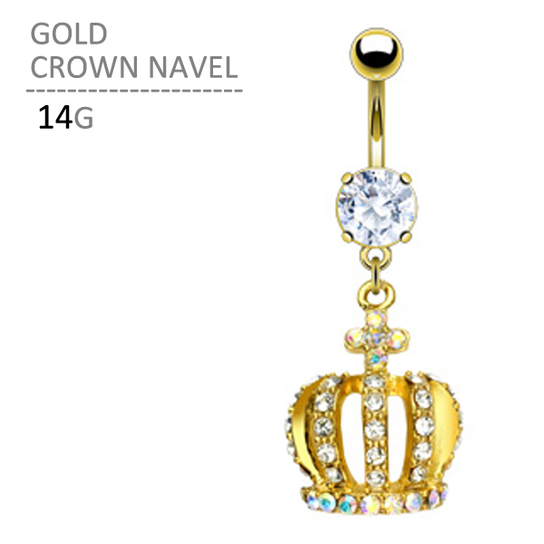 へそピアス ゴールドクラウンネイブル 14G 王冠 ボディピアス ボディーピアス カーブドバーベル カーブバーベル トラガス ヘリックス 耳ピアス 軟骨ピアス ピアッシング ヘソピアス ゴールド サージカルステンレス