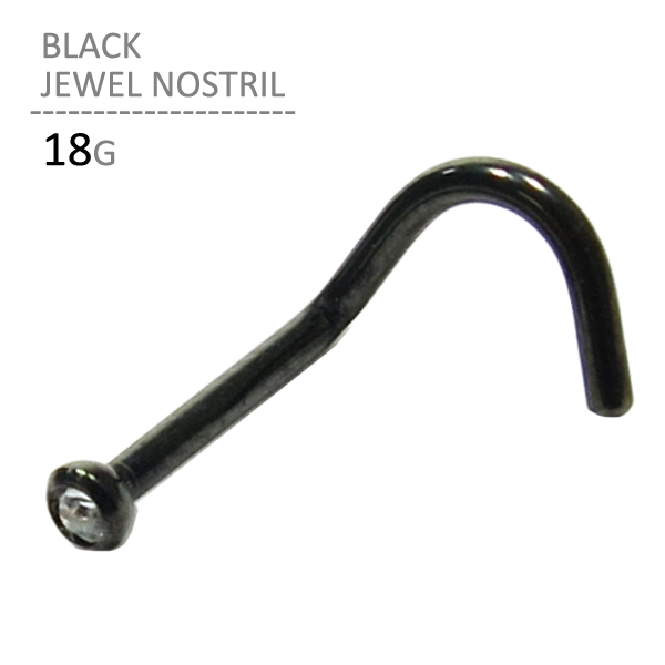 鼻ピアス ブラックジュエルノストリル 18G サージカルステンレス ブラック ボディピアス 鼻ピ キラキラ ボディーピアススクリュータイプ 外れにくい ハナピ