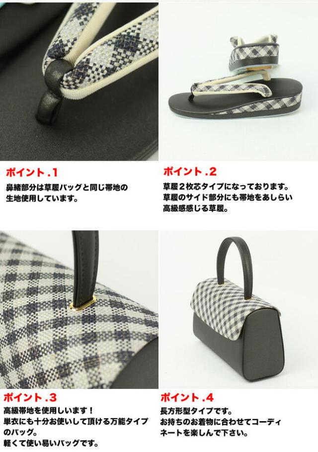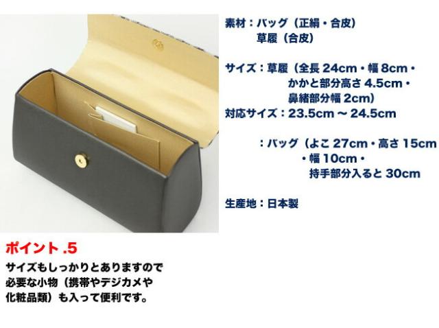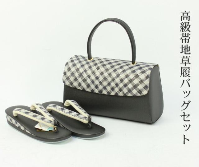 日本製 草履バックセット 正絹高級帯地 草履 バッグ 夏 着物 和装 和服 黒 Fサイズ 単衣にもお使い下さい
