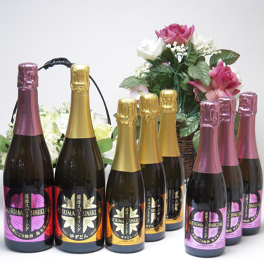 薩摩スパークリングホームデラックス8本セット(ゆずどん375ml3本750ml、梅太夫375ml3本750ml)750ml×2本、375ml×6本