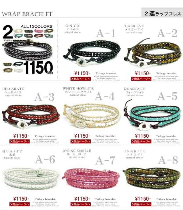 本革2連 海外セレブ愛用 レザー&天然石ストーン ラップブレス 水晶 オニキス メンズ レディース ブレスレット 革【 lap2 】