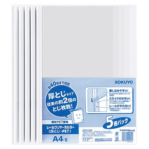 レールクリヤーホルダー 厚とじ・PET A4タテ 40枚収容 白 1パック(5冊)