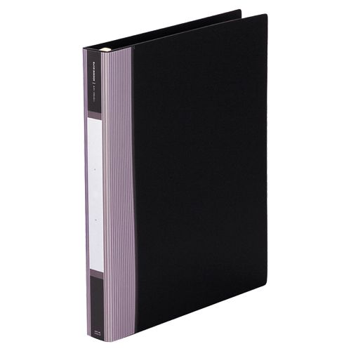 ●リフィルバインダー、A4タテ、背幅35mmの黒です。●見開き左側に三角ポケット付。●金属とじ具。