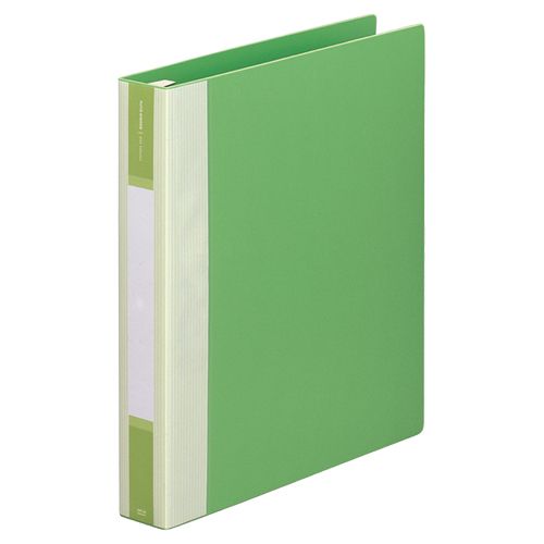 ●リフィルバインダー、A4タテ、背幅50mmの黄緑です。●見開き左側に三角ポケット付。●金属とじ具。