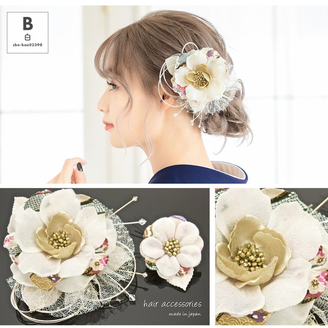成人式 髪飾り 成人式の髪飾り 白 2点セット 和柄 レース 花 フラワー クリアビーズ 和装