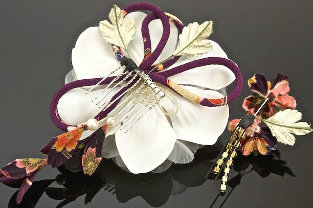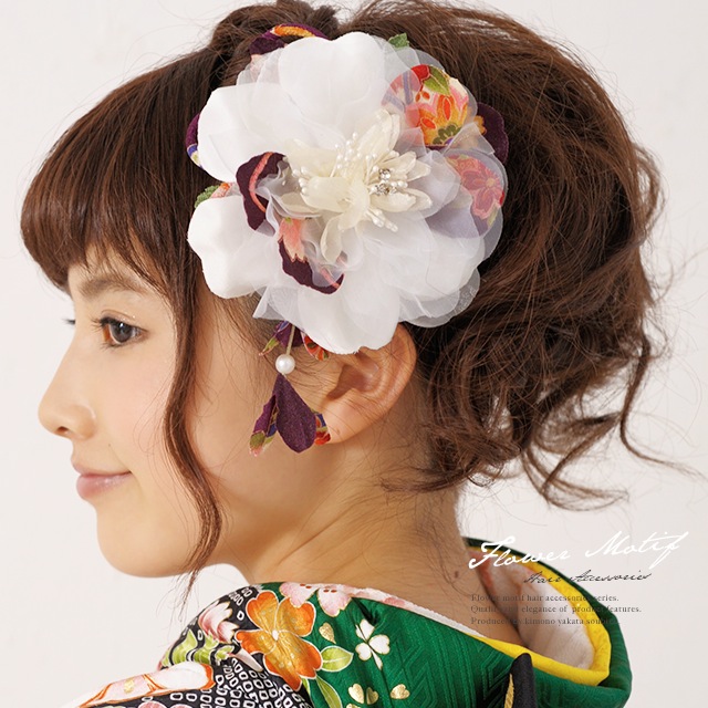 成人式 髪飾り 成人式の髪飾り 白 紫 2点セット 和柄 オーガンジー パール ラインストーン 花 フラワー 和装