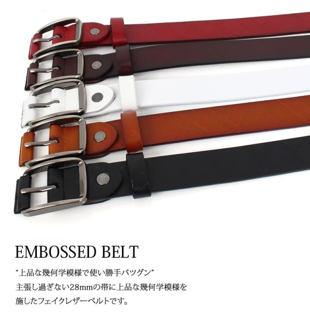 ベルト メンズ シンプル カジュアルベルト エンボス 幾何学 おしゃれ ビジネスベルト 本革 レザー 牛床革 28mm 男性用 ブラック ホワイト ブラウン レッド