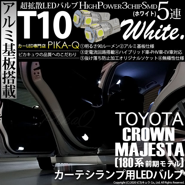 トヨタ クラウン マジェスタ (180系 前期) 対応 LED カーテシランプ T10 5連 90lm ホワイト アルミ基板搭載 2個 室内灯 2-B-5