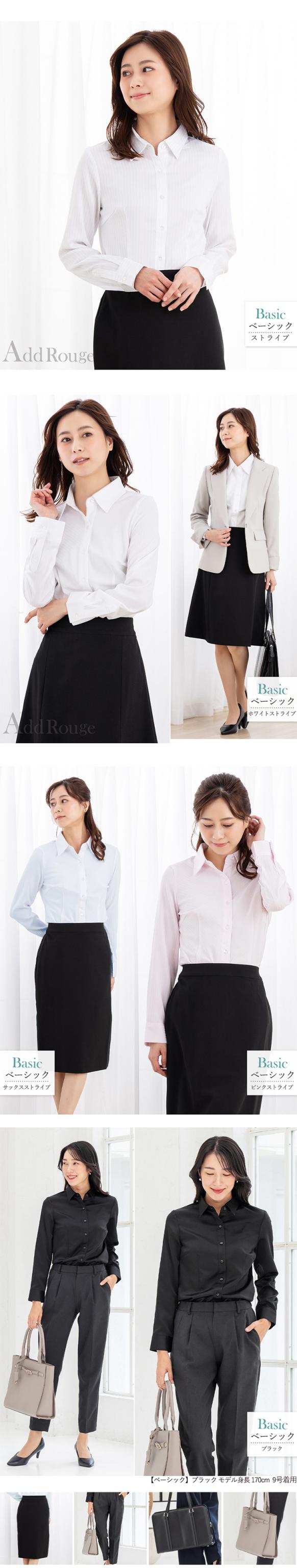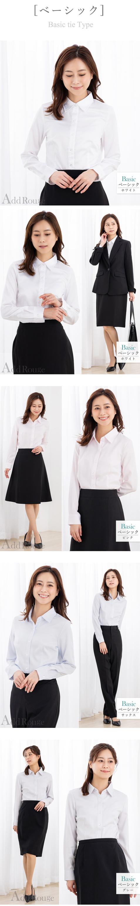 用途 | 通勤スーツのインナーや制服としてビジネスシーンはもちろん、セレモニーシーンでも活躍してくれます。 第一ボタンまで留まるベーシックタイプは就活・転活の必需品です。 |