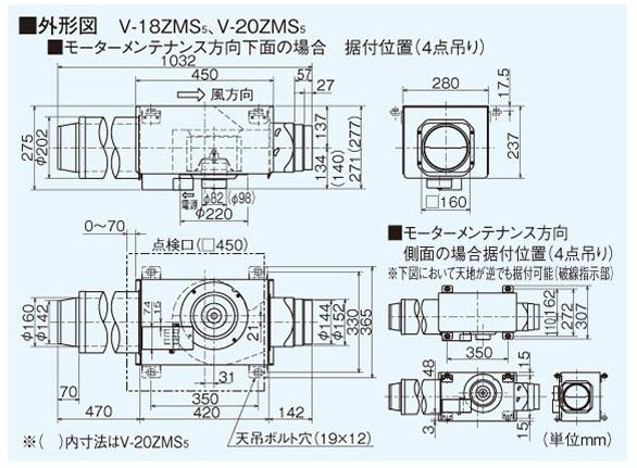 V-18ZMS5 三菱電機 中間取付形ダクト用ファン 消音形/事務所・施設・店舗用