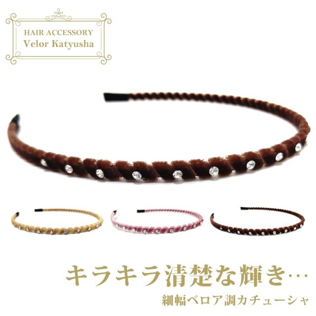 カチューシャ ベロア調×クリスタル 細幅 レディース おしゃれ ヘアアクセ ha-358 メール便は送料無料 ポイント消化 ラインストーン きらきら パーティー 髪留め キラキラ クリスタル まとめ髪 普段使い 可愛い 大人 女性 ワンポイント 華やか