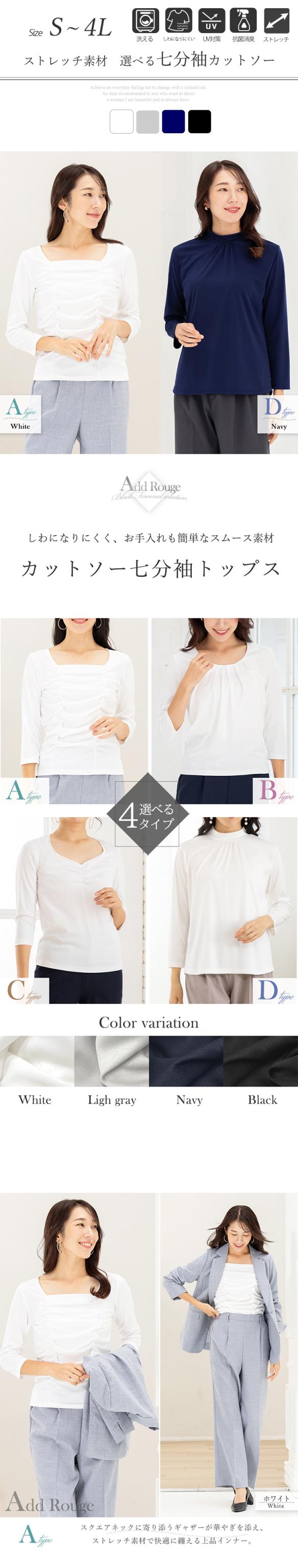 【メール便送料無料】レディース スーツ トップス ブラウス インナー カットソー 半袖 七分袖 ビジネス オフィス 無地 大きいサイズ レディースブラウス スーツインナー 白 c563575 [M便 1/2]