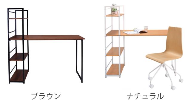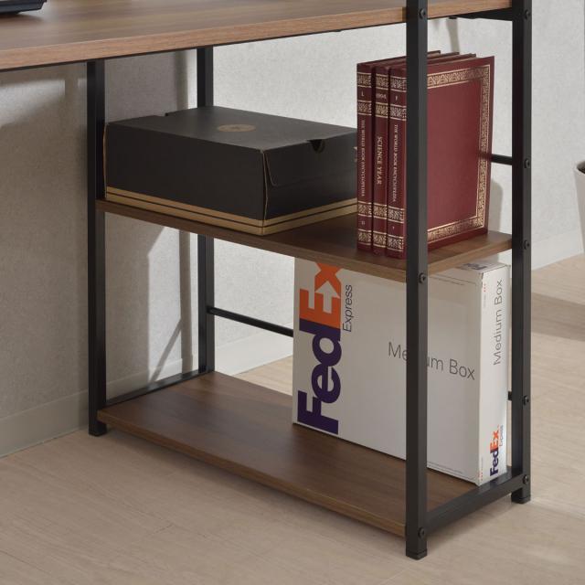 ラックとデスクが一緒になっているので収納力抜群で、デスク周りの書類などの整理ができます。また、落ち着きのあるカラーですので、どんなお部屋にも合わせていただきやすいです。