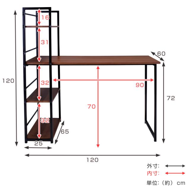 | サイズ | 約 幅120×奥行65×高さ120(cm) 天板までの高さ:72(cm) |