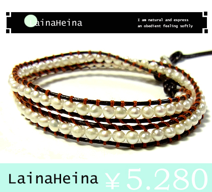 送料無料【LainaHeina】ホワイトパール&シルバー925 パワーストーンブレスレット/レザー/2重巻き/aut_ma