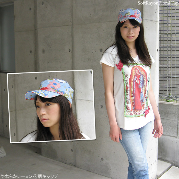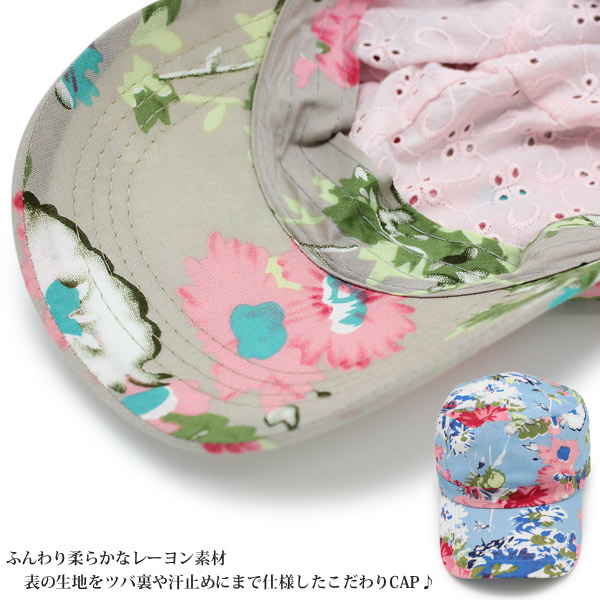帽子 レディース [メール便可] キャップ CAP 春夏 軽量 小顔効果 / やわらかレーヨン花柄キャップ