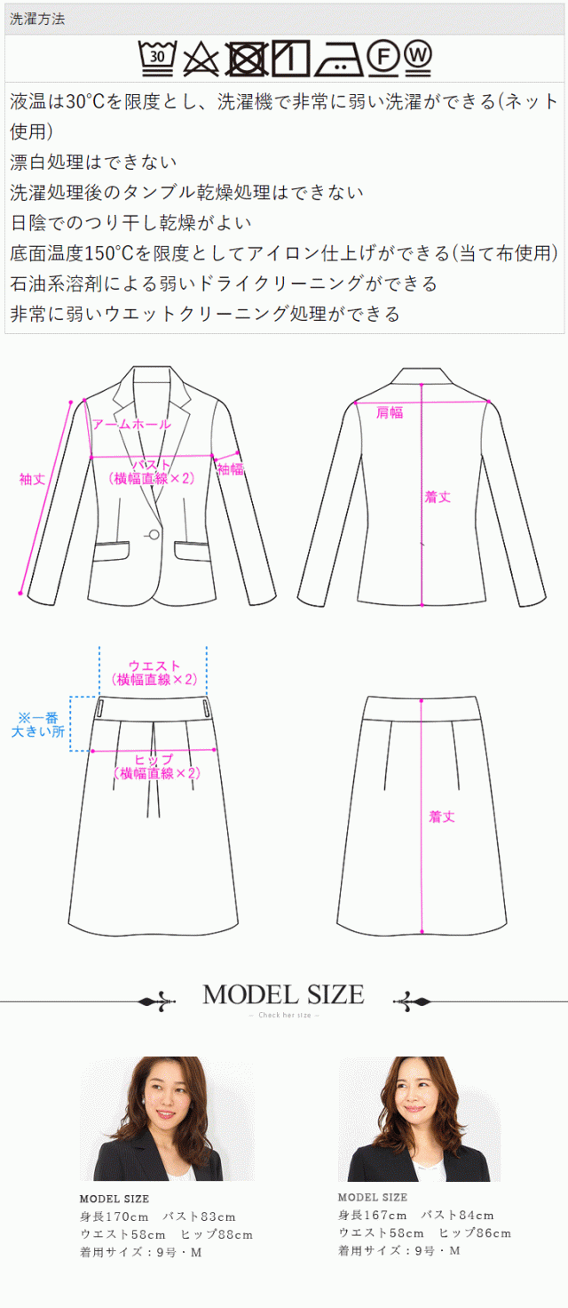 ご家庭の洗濯機で洗える≪ウォッシャブル≫機能が特徴の、デザインが選べるスカートスーツです。