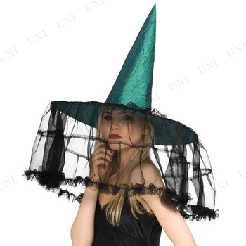 コスプレ 仮装 ウィッチハット(ヴェール付き/グリーン) 帽子 プチ仮装 コスプレ小物 小道具 ハロウィン向け
