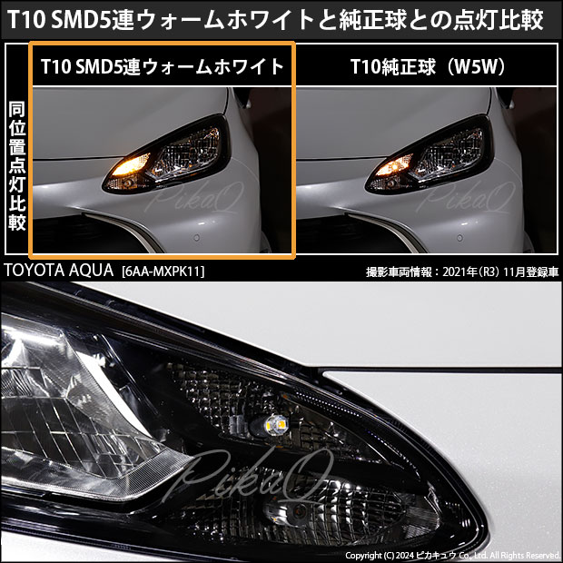 ピカキュウ,LED専門店,LEDバルブ,LED,SMD,T10,W5W,T10 HIGH POWER 3CHIP SMD 5連ウェッジシングル球,ウォームホワイト(電球色),ポジションランプ,車幅灯