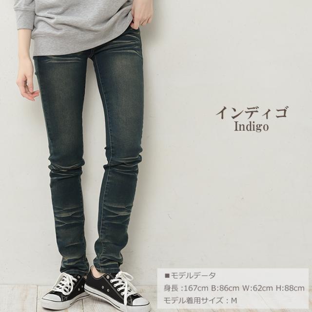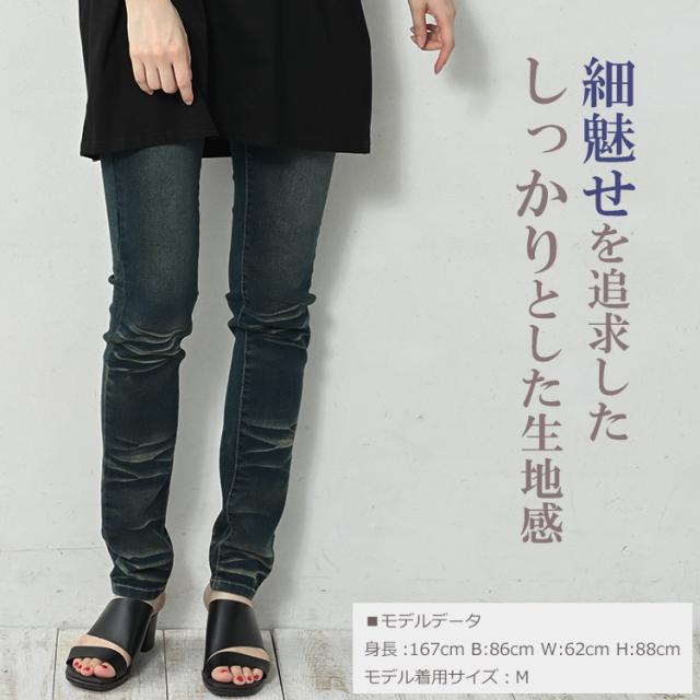 送料無料※沖縄/北海道対象外 デニムパンツ レディース 大きいサイズ ストレッチ スキニーデニム ヴィンテージ加工 スキニーパンツ