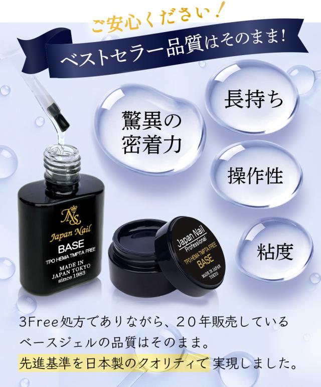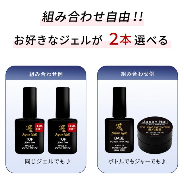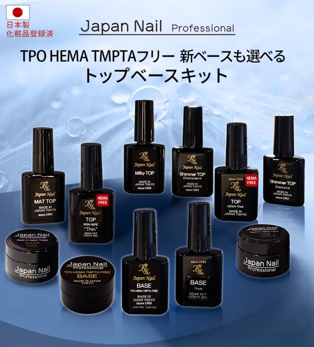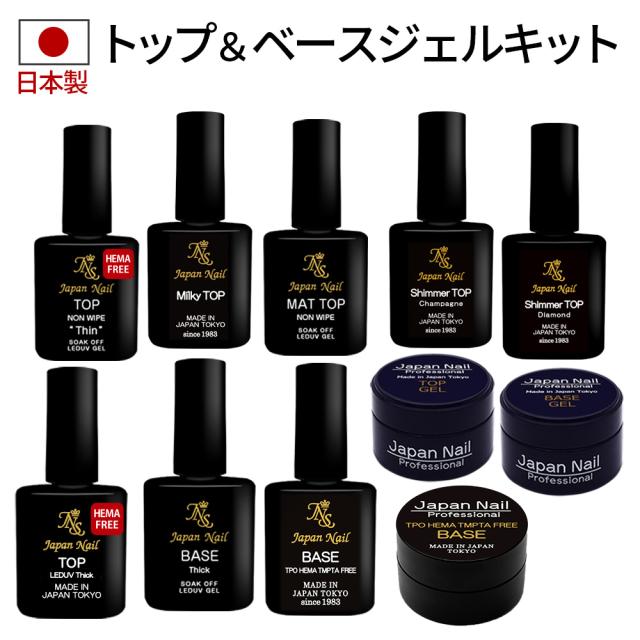 ベースジェル トップジェル 日本製HEMAフリーも選べる!自爪を削る必要無し最大3ヶ月剥がれないベースコート輝く艶のぷっくりノンワイプトップコートのジェルネイルキット ジャパンネイルプロフェッショナルシリーズ