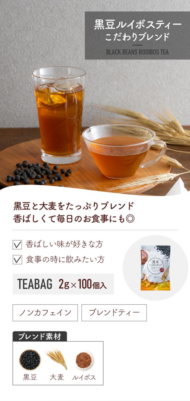 原料:黒豆(アメリカ)、大麦(カナダ)、ルイボス(南アフリカ共和国)