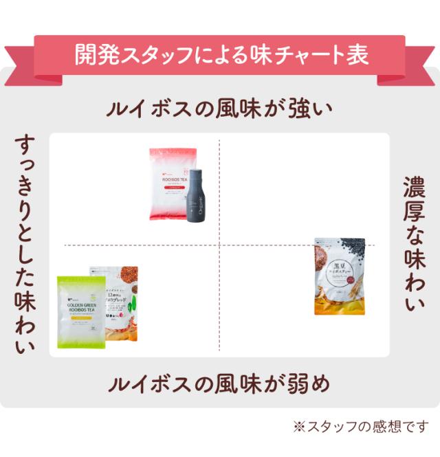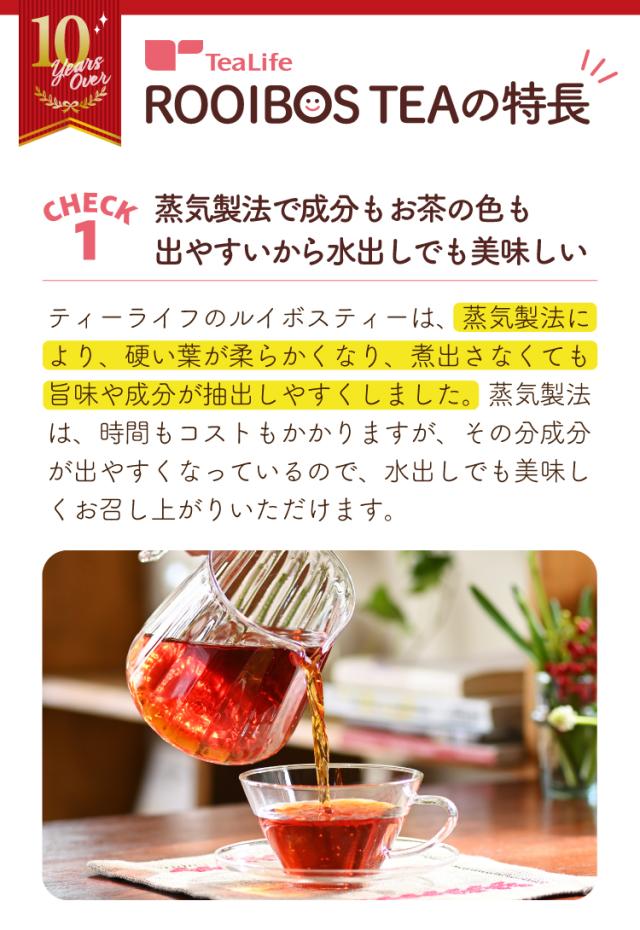 - ルイボスティー101個入を購入してますが水出しでもしっかりルイボスティーの味が出ててとても飲みやすく美味しく頂いています。