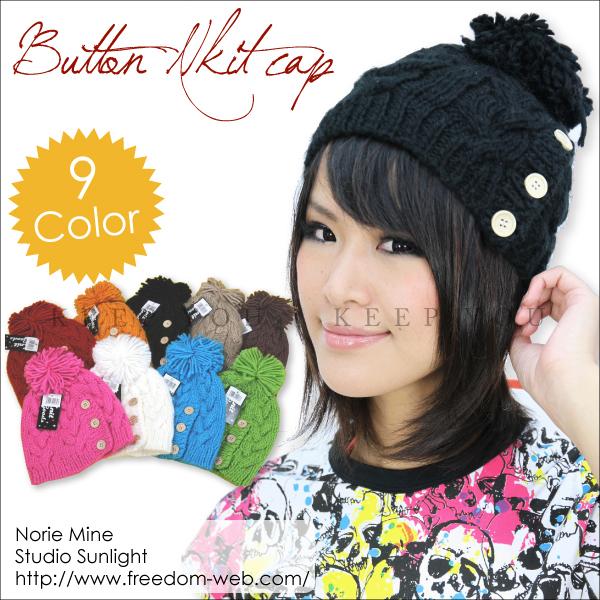 【メール便対応】ニットキャップ ボタン付き 縄編みニット帽子【メンズ レディス カジュアル 男女兼用 ニット帽】Knit Cap ┃
