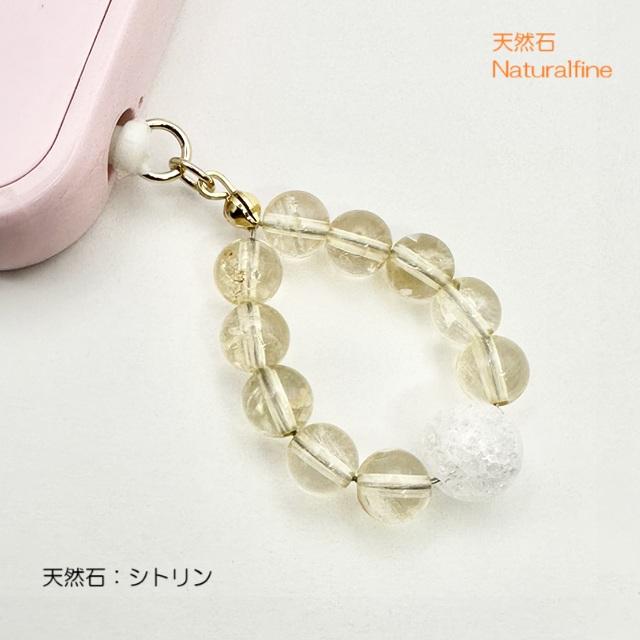 イヤホンジャック アンドロイド iPhone ストラップ シトリン 天然石 パワーストーン 富をもたらす スマホピアス