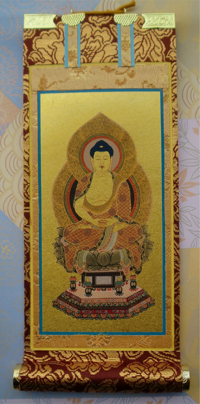 掛軸の三枚セット+木造のご本尊が一番良い組み合わせですが、木造のご本尊と脇2枚セットとの組み合わせでも結構です。