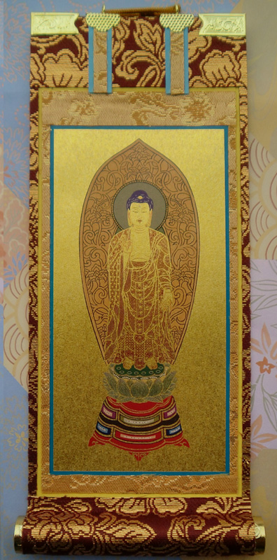 掛軸の三枚セット+木造のご本尊が一番良い組み合わせですが、木造のご本尊と脇2枚セットとの組み合わせでも結構です。