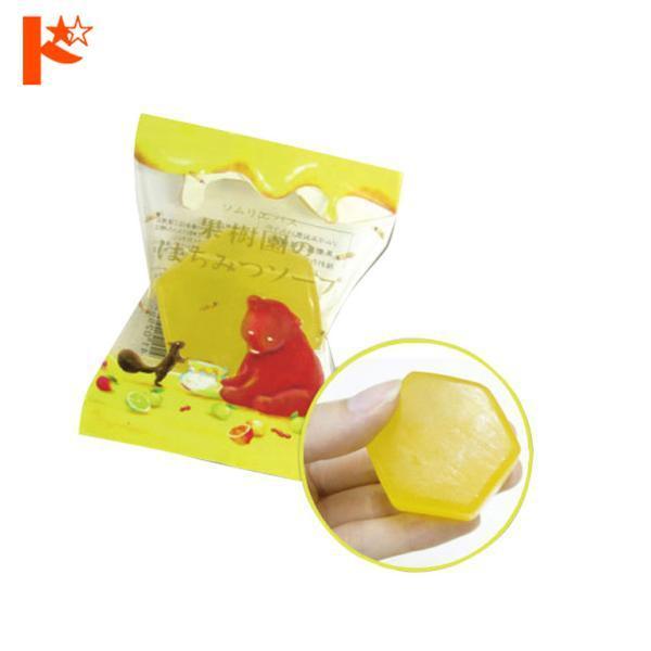 ●はちみつ色の六角形のミニソープです。植物石けんなのでお肌にやさしい仕上がりになっています。ゲストループや旅行に便利なサイズです。フルーツとはちみつの甘い香りになっています