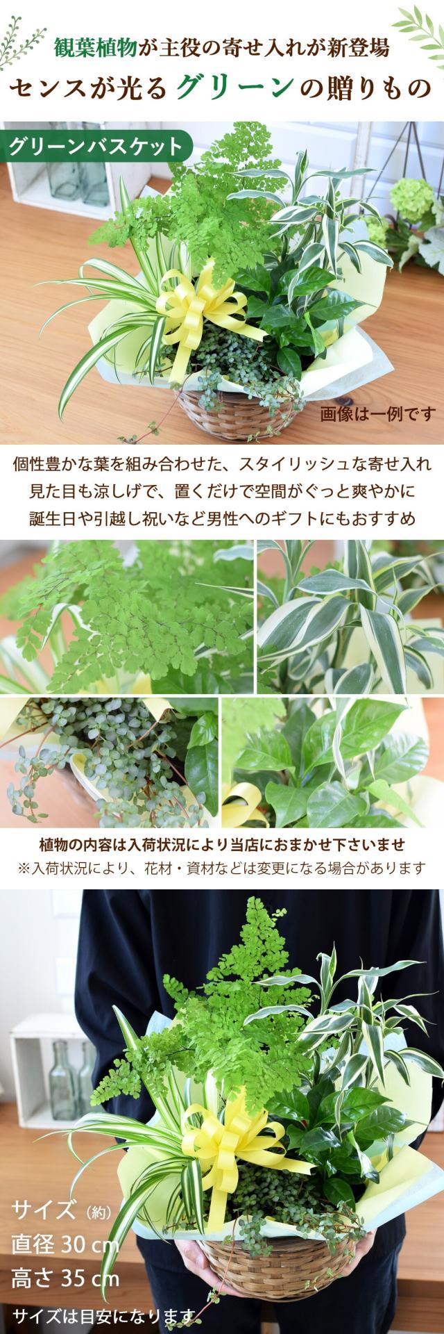 | サイズ | フラワーバスケット:(約)高さ〜35cm前後 グリーンバスケット:(約)直径30 × 高さ35 cm ※植物につきサイズは目安となります |