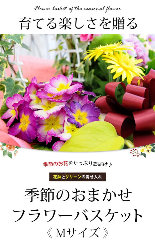 季節のおまかせ花鉢とグリーンの 寄せ入れ Mサイズ フラワーバスケット 鉢植え 鉢花 フラワーギフト お誕生日 ギフト 花 誕生日 プレゼント 女性 母 祖母 お祝い 同僚 おしゃれ 新築祝い 開店祝い 引っ越し祝い プレゼント お歳暮 冬ギフト クリスマス いい夫婦の日 お正月