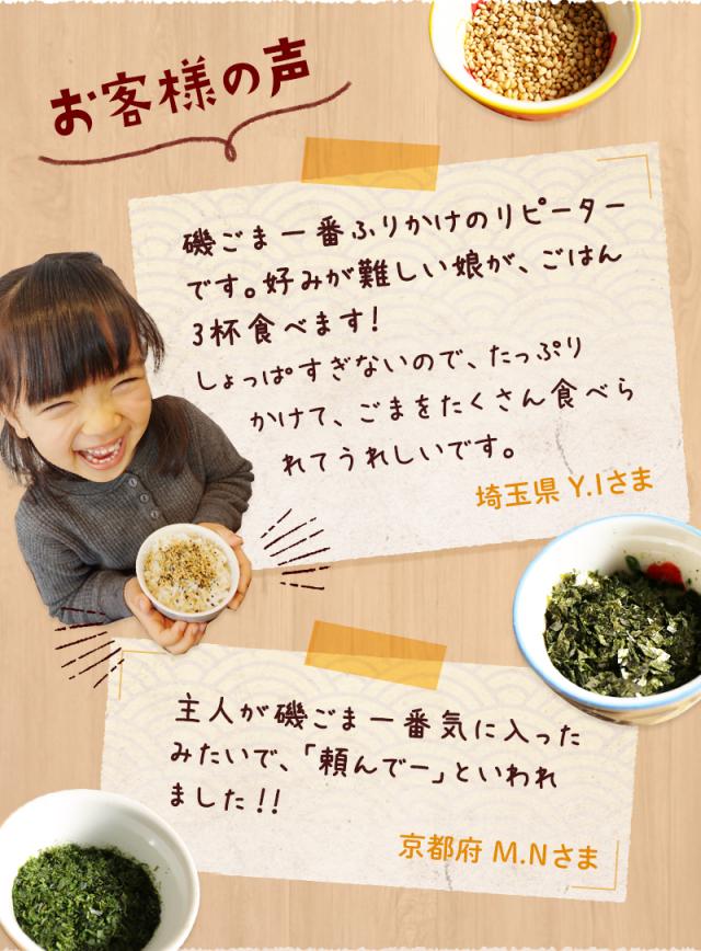 「いつもは食の細い子供も、磯ごま一番をかけるとおかわりしてくれます!」など嬉しいお声もたくさん届いています♪