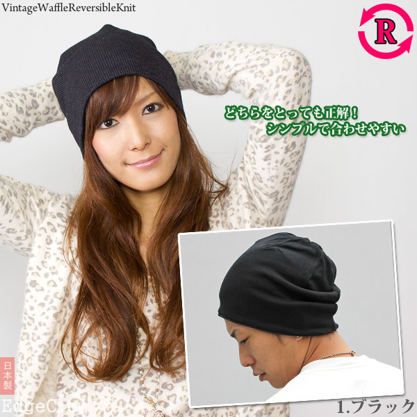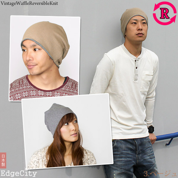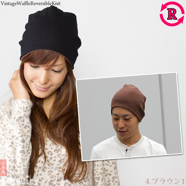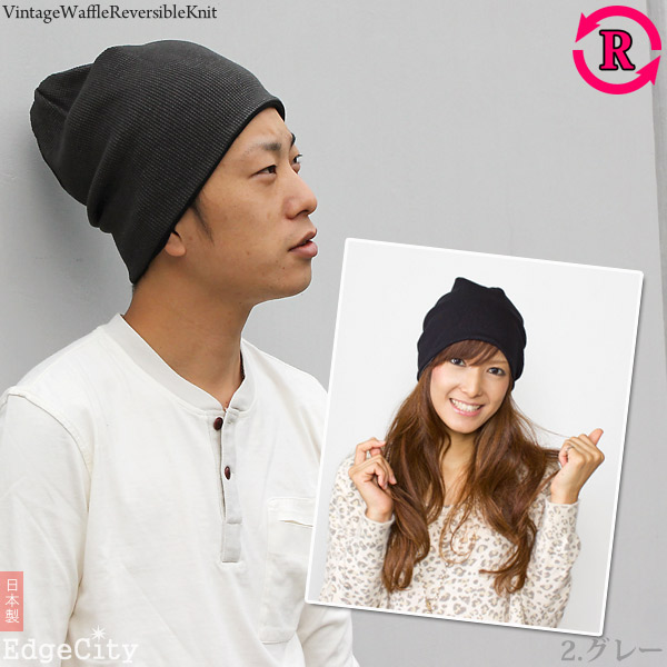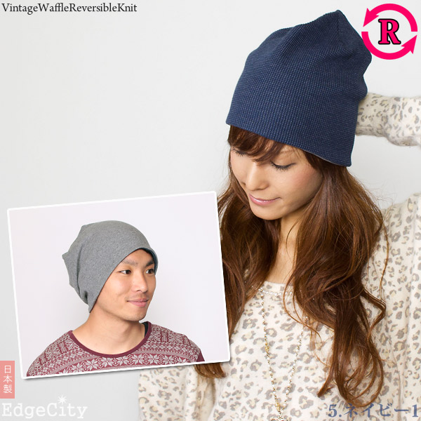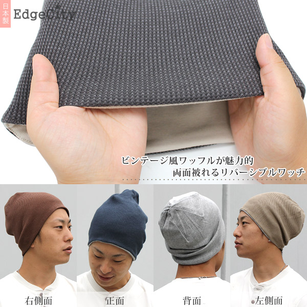 ニット帽 メンズ [メール便可] 帽子 レディース 春夏 秋冬 / ビンテージ風Waffleリバーシブル ニットワッチ 日本製