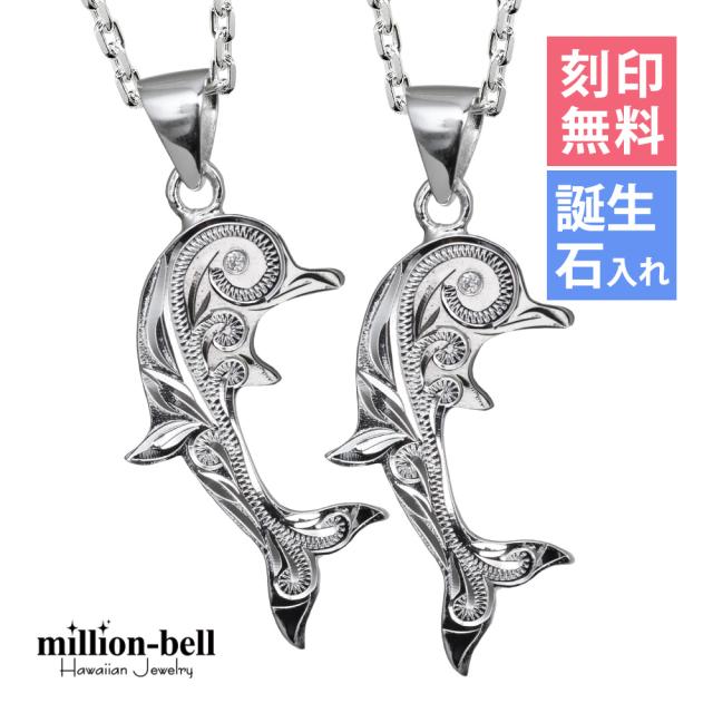 ハワイアンジュエリー ネックレス ペア 誕生石 シルバー ハワイアンジュエリー ペアネックレス 刻印 2本セット スクロール ドルフィン ジルコニア シルバー925 大人 カップル 夫婦 プレゼント 母の日 【品番:CG-SP2557P】