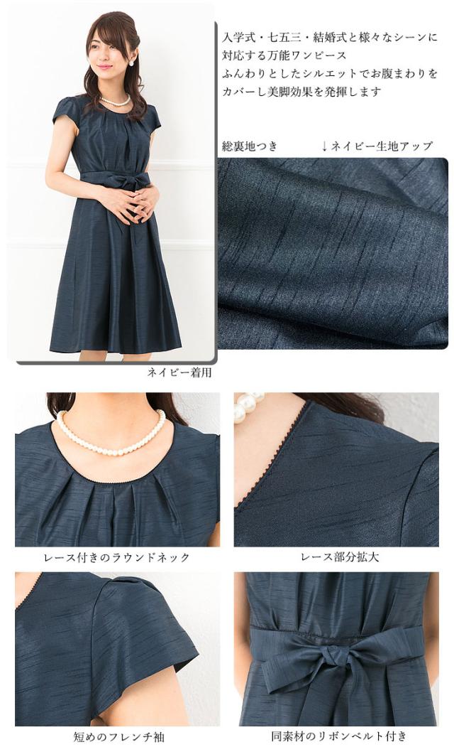 - ネイビーを購入しました コサージュ付きで割引きもされていて 可愛いフォーマルが買えました ウエストのリボンである程度調節出来ます 着ていてもしんどくなさそうで良かったです 生地は光沢があるので暗...