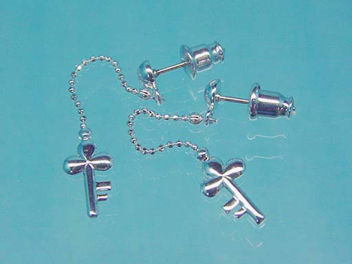 揺れるクローバー『鍵』モチーフピアス、扉や箱など「開ける」という意味を表すキー『鍵』をモチーフにしたピアスです。悩みや人生の転機を模索している人…この鍵であなたの本当の扉を開けてみませんか?