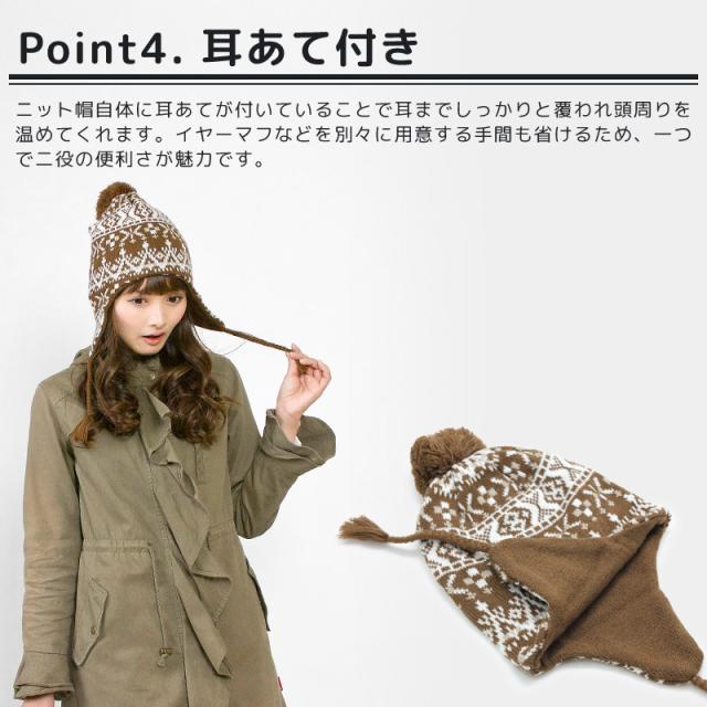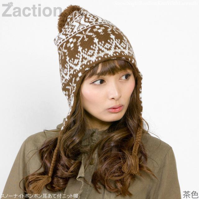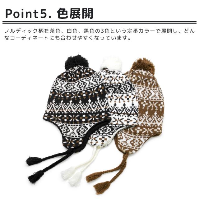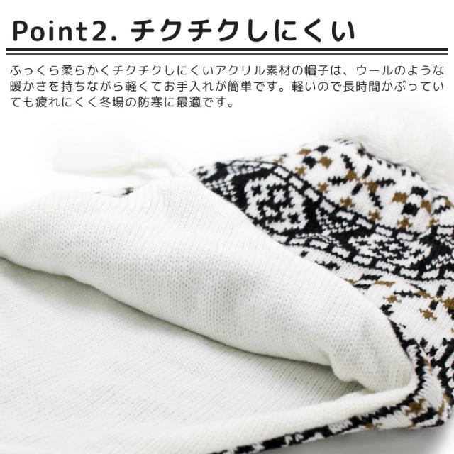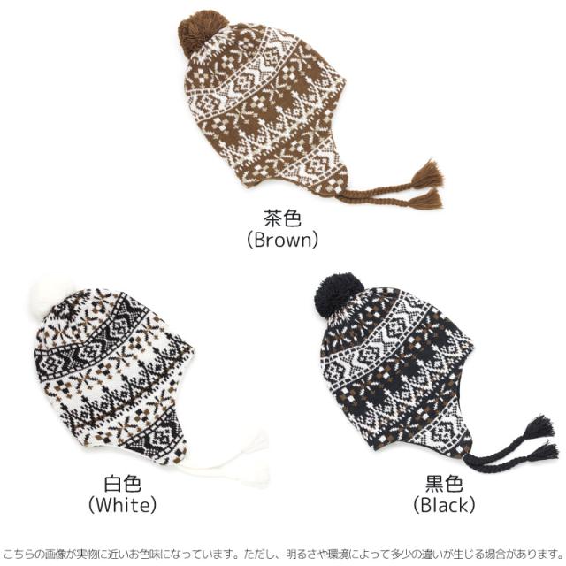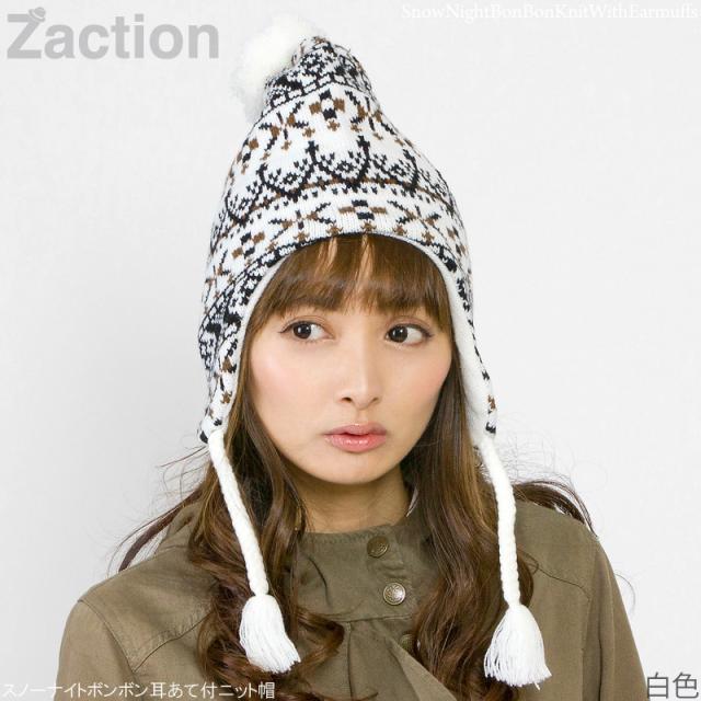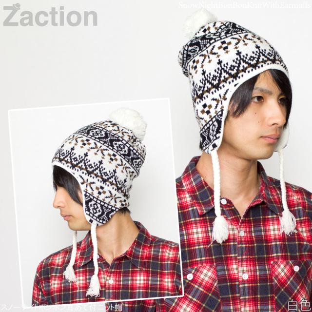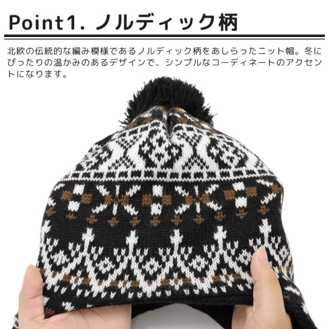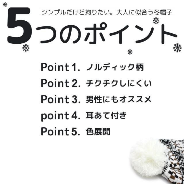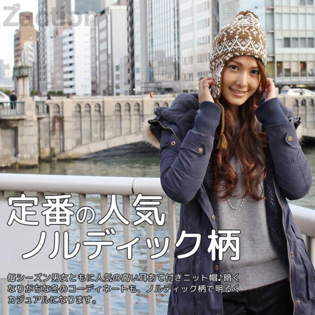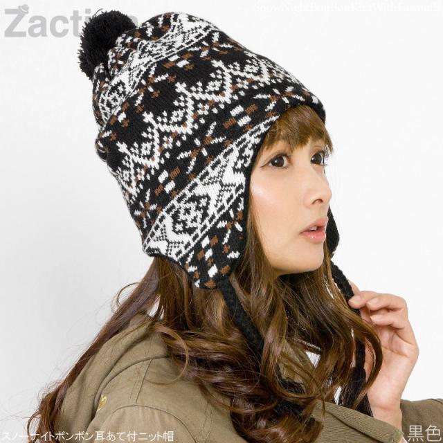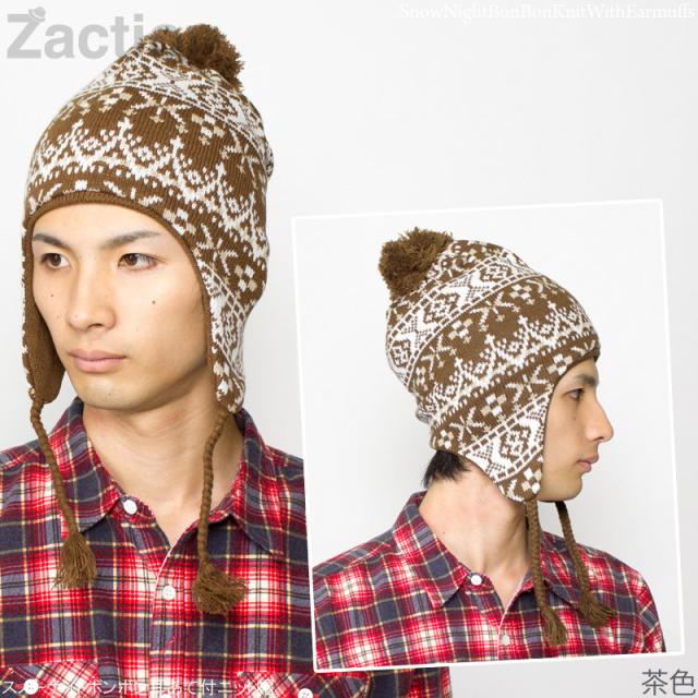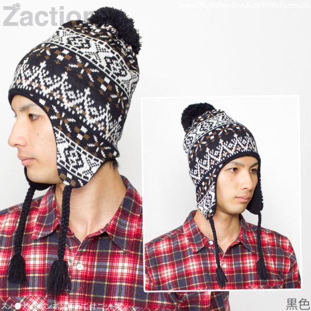 ニット帽 ボンボン [メール便可] メンズ 帽子 スキー スノボ レディース ノルディック柄 / スノーナイトボンボン 耳あて付 ニット帽