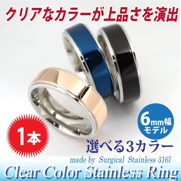 クリアなサージカルステンレスリングにPVDコーティングを施した透明感あふれるカラーリング。