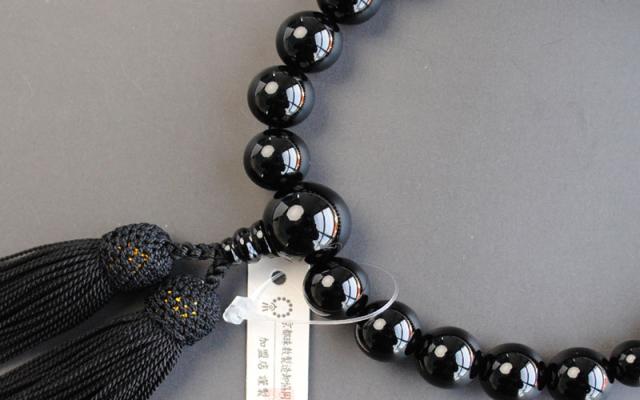 京都数珠製造卸組合・男性用数珠・ブラックオニキス・正絹頭房付