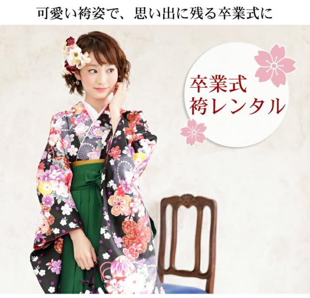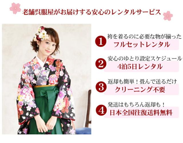 レンタル 卒業式・謝恩会 袴セット2尺袖着物&袴 フルセット袴レンタル 安い