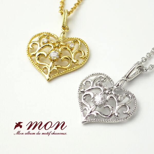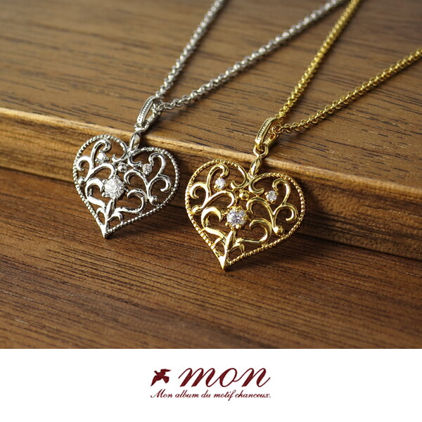 【mon】 選べる2カラー アラベスク オープンハート シルバーネックレス 送料無料