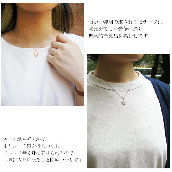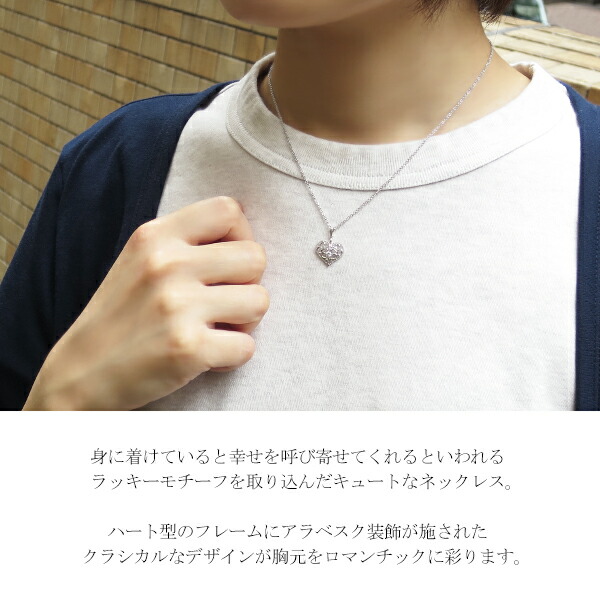 選べる2カラー 透かし アラベスク 唐草 ハート シルバーネックレス シルバー925 ネックレス キュービックジルコニア ロジウム ゴールドカラー