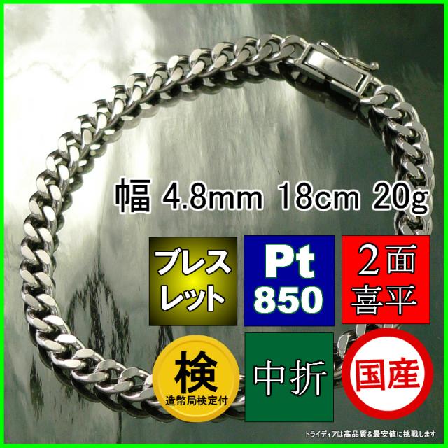 プラチナ 喜平 ブレスレット 20g 18cm 2面 幅4.8mm 造幣局検定付 アンクレット Pt850 喜平ネックレス 日本製 チェーン メンズ レディース アクセサリー 中折 国産 白金 pt キヘイ kihei 二面 プレゼント グラム 誕生日 贈り物 ギフト