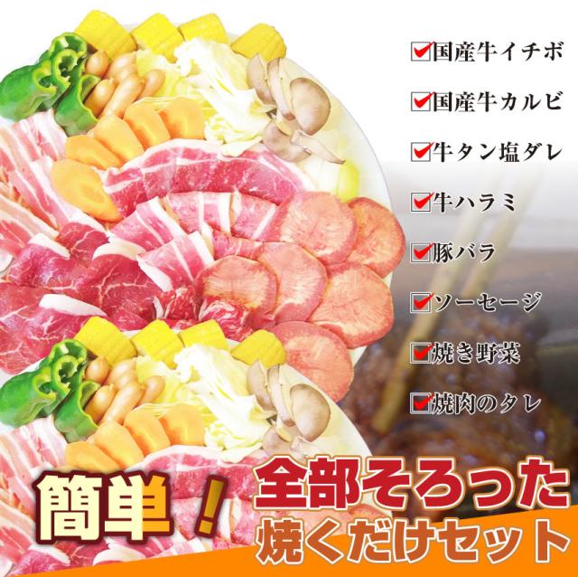 焼くだけ簡単!タレも野菜もついてるからご用意は炭と皿だけ!!メガ盛りBBQセット!