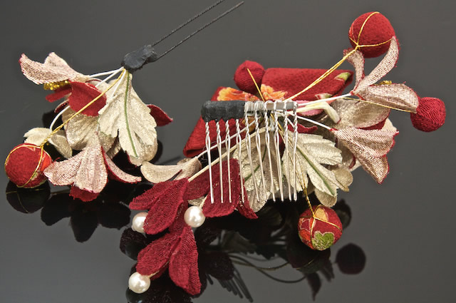 縮緬地を贅沢に使用した髪飾り2点セット。