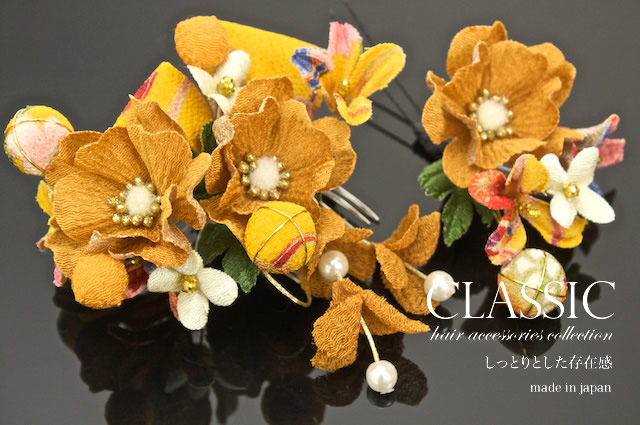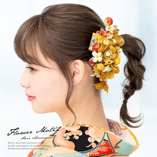 成人式 髪飾り 成人式の髪飾り 2点セット 振袖 卒業式 袴 はかま 和柄 リボン パールビーズ 黄色 花 フラワー 着物 ふりそで 髪かざり 和装
