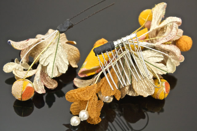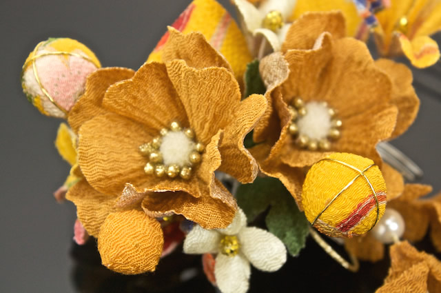 縮緬地を贅沢に使用した髪飾り2点セット。